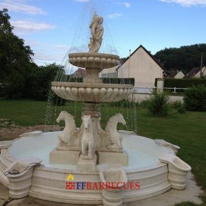• FONTAINE EN PIERRE RECONSTITUÉE CHEVAUX JETS D’EAU-F