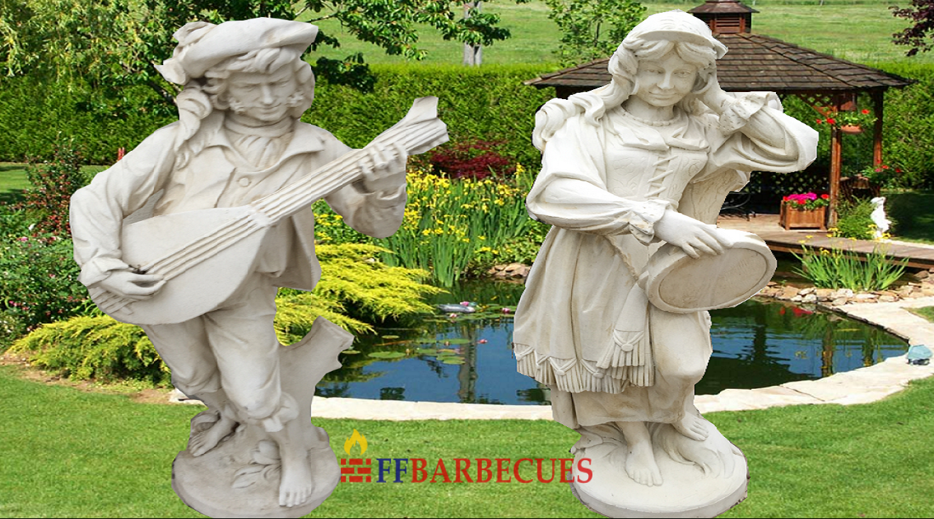 STATUES COUPLE EN PIERRE RECONSTITUÉE BALADINS ,