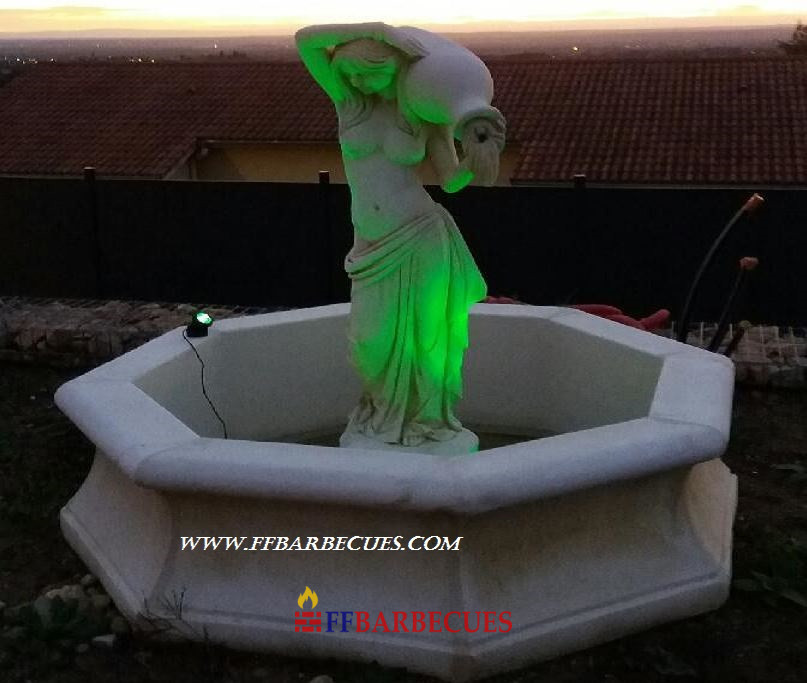 FONTAINE BASSIN OCTOGONAL EN PIERRE RECONSTITUÉE FEMME A LA CRUCHE ,